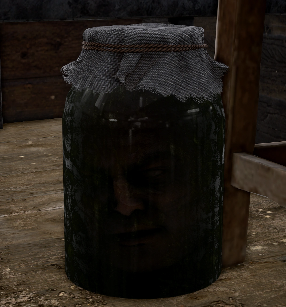 Mendez head in a Jar | Reference to Mendez meme | Found in the "T" shaped houses |