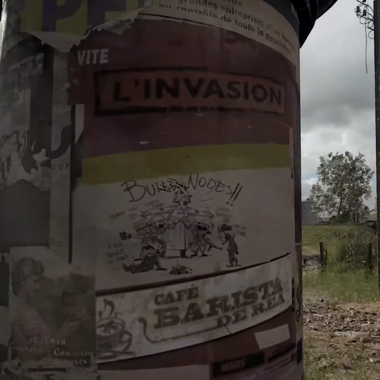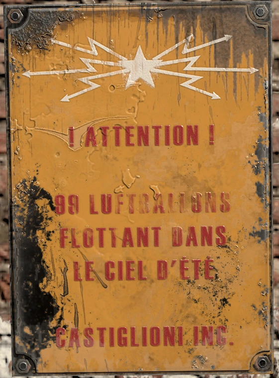 99 Luftballoons Poster | Reference to "99 Luftballons" 1983 song by NENA. | On walls and buildings on some maps.