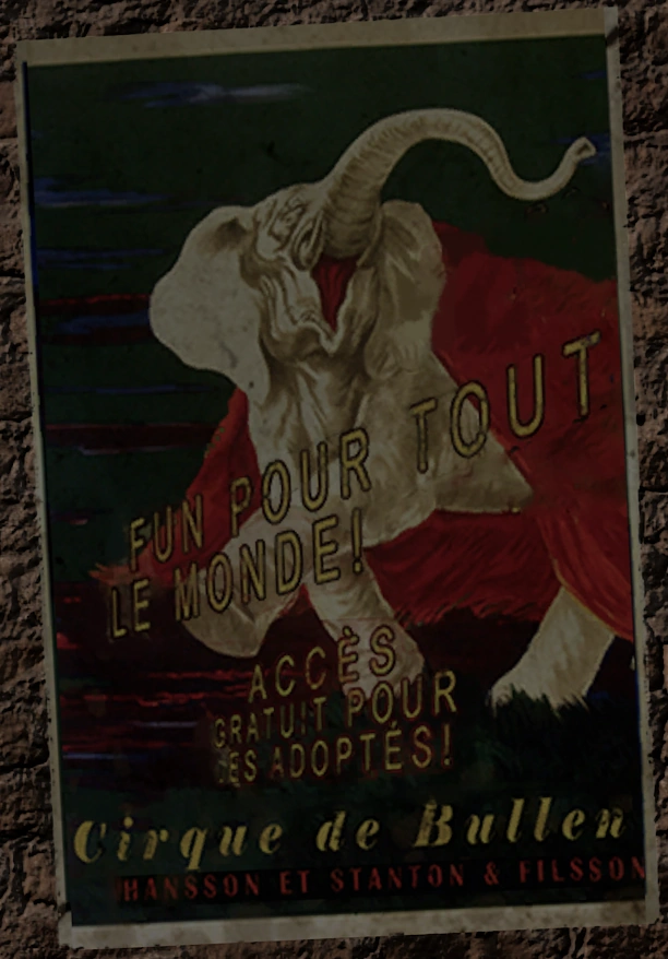Cirque de Bullen Poster | Reference to level designer Will Bullen and vintage Je Ne Fume Que Le Nil cigarette poster. | On walls and buildings on some maps* |