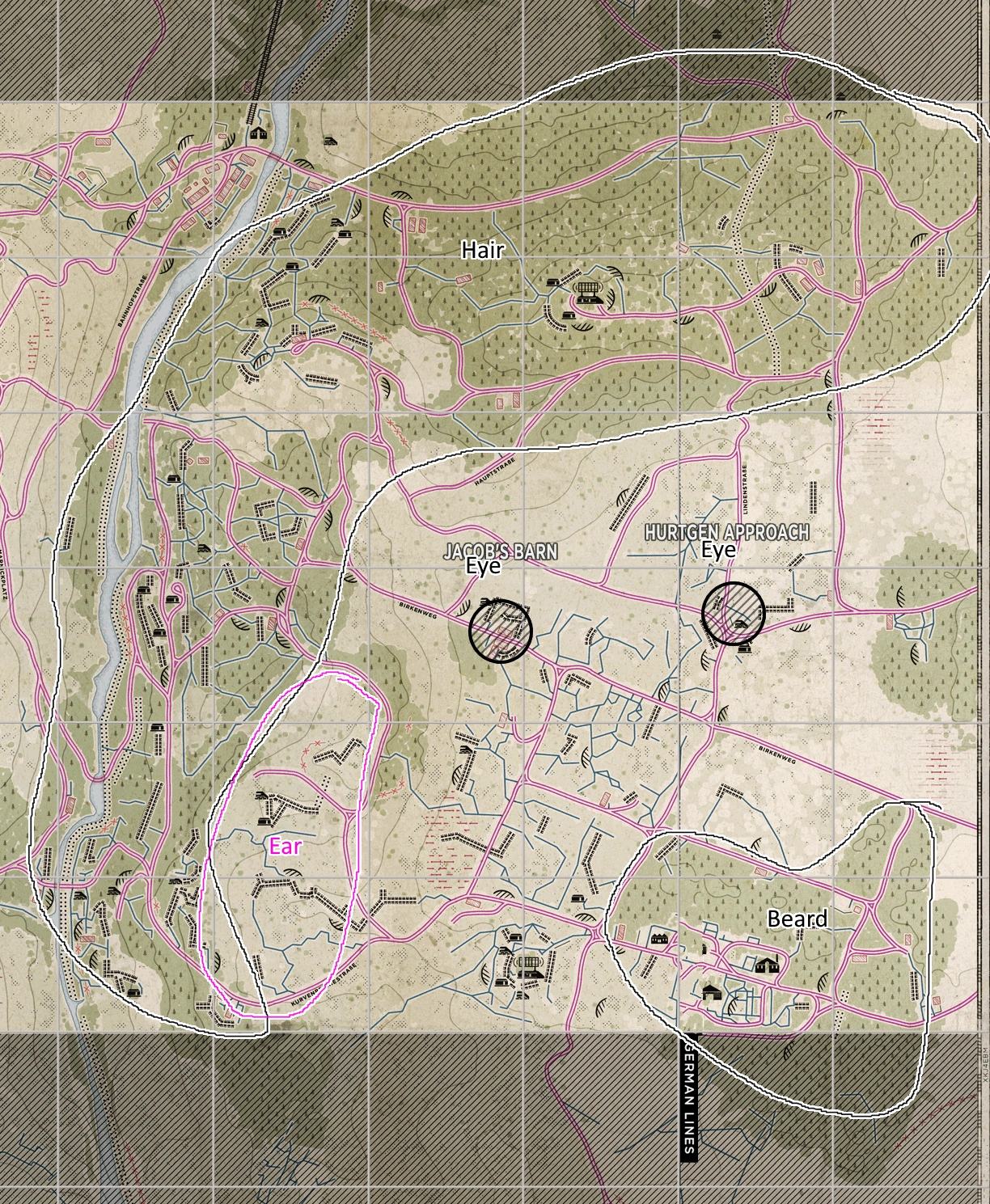 Tacmap Face | Founder Max's face hidden in the tacmap colors and strongpoint circles. | German half of the map |